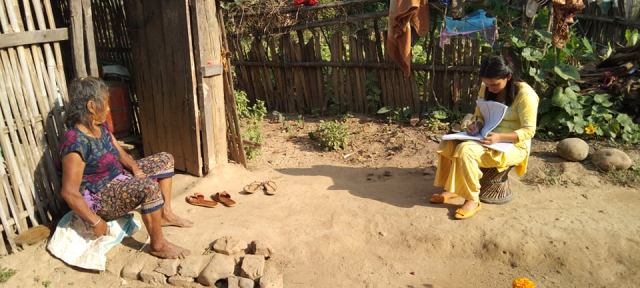 १२ औं राष्ट्रिय जनगणनामा कटारी ३ मा गणना गर्दै गणक सुमित्रा कार्की । तस्बिर/ ऋषि राई