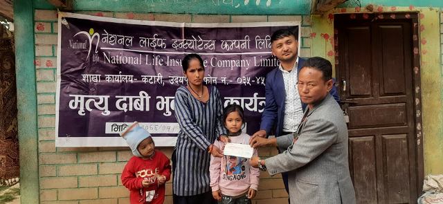 नेशनल लाइफ इन्स्योरेन्स कम्पनी कटारीका शाखा प्रमुख भक्त श्रेष्ठ तथा जीत बहादुर सुनुवार अभिकर्ता बिष्णु पोख्रेल, स्थानिय जनप्रतिनि भिम बहादुर बिक तथा स्थानियहरुको सहभागीमा रकम भुक्तानी गरिएको हो ।