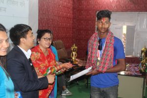 प्रमुख अतिथि उपमेयर खड्काले खेलाडीहरुलाई मेडल , अविरले सम्मान गर्नुभयो । त्यसैगरी विशेष अतिथि नगरपालिकाका प्रमुख प्रशासकीय अधिकृत अनिल किरातीले संरचनाको अभावका वीचमा पनि छोटो तयारीका वावजुत खेलाडीहरुले राम्रो सफलता प्राप्त गरेको भन्दै वधाई दिनुभयो ।
