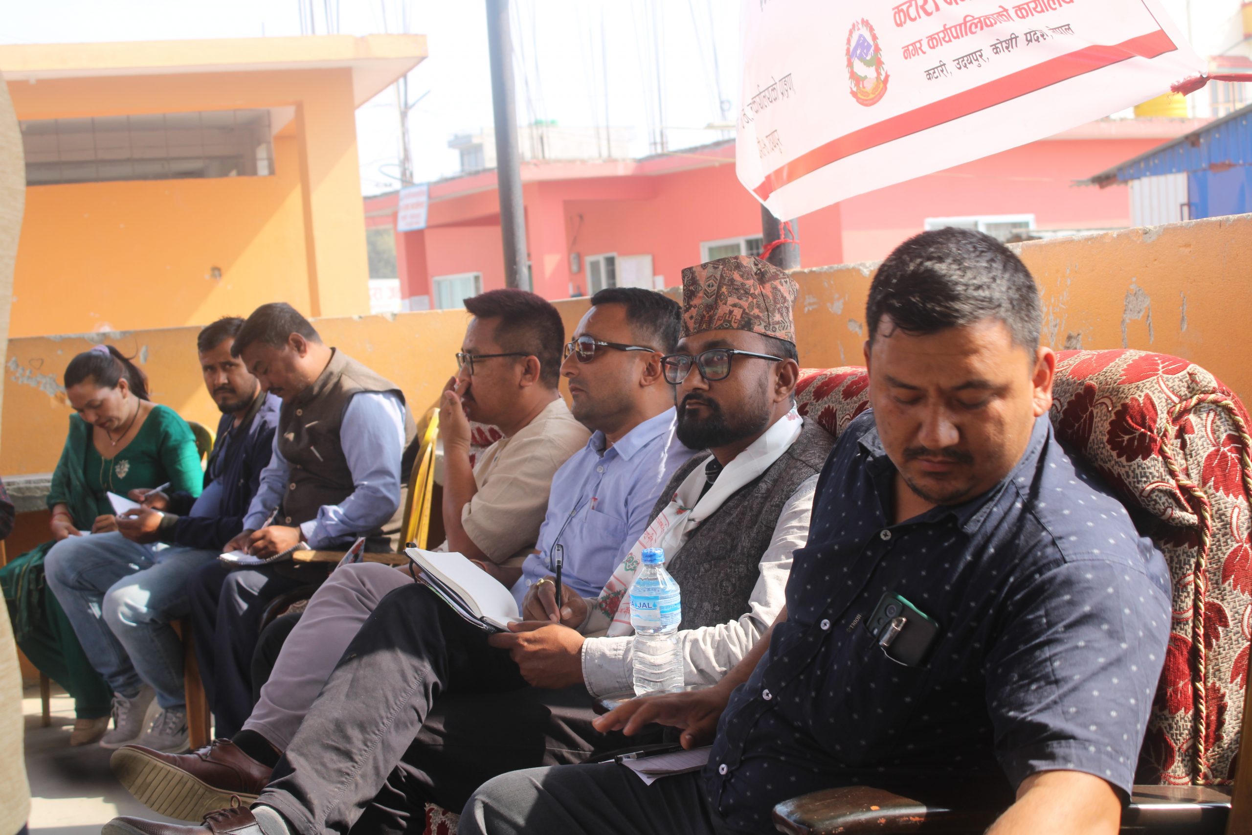 दोस्रो चौमासिक अन्र्तगत मंसिर देखि फागुन सम्म नगरपालिकाले गरेका प्रगतिका कार्यक्रमहरु जानकारी गराउने उद्येश्यले सार्वजनिक सुनुवाई गरिएको नगरपालिका प्रमुख प्रशासकीय अधिकृत अनिल किरातीले बताउनुभयो । कार्यक्रममा अधिकृत किरातीले यस चौमासिकमा नगरपालिकाले गरेका कार्यहरुको प्रतिवेदन पेश गर्नुभएको थियो ।प्रतिवेदन पेश गर्दै अधिकृत किरातीले कटारी नगरपालिकाको आन्तरिक स्रोत कमजोर भएको बताउनुभयो । यस चौमासिकमा २ करोड लक्ष्य राखिएको आन्तरिक स्रोतमा ४२लाख उठाउन पनि मुस्किल परेको अधिकृत किरातीले बताउनुभयो ।