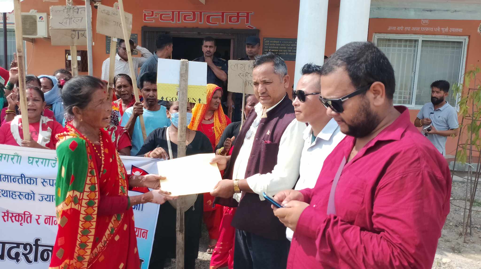 विभिन्न नाराको प्लेकार्ड , र्याली सहित दुधौली बजार परिक्रमा गरी उनीहरुले नगरपालिकाका प्रवक्ता दिपक खड्कालाई ज्ञापन पत्र बुझाउँदै लघुवित्त खारेजीको माग गरेको अभियानका नेतृत्वकर्ता बर्माबहादुर विश्वकर्माले बताउनुभयो । ज्ञापन पत्र बुभ्mदै प्रवक्ता खड्काले दुधौलीमा पनि लघुवित्तबाट धेरैजना पीडित भएकाले यसको विषयमा नगरले चासो लिईरहेको बताउनुभयो ।