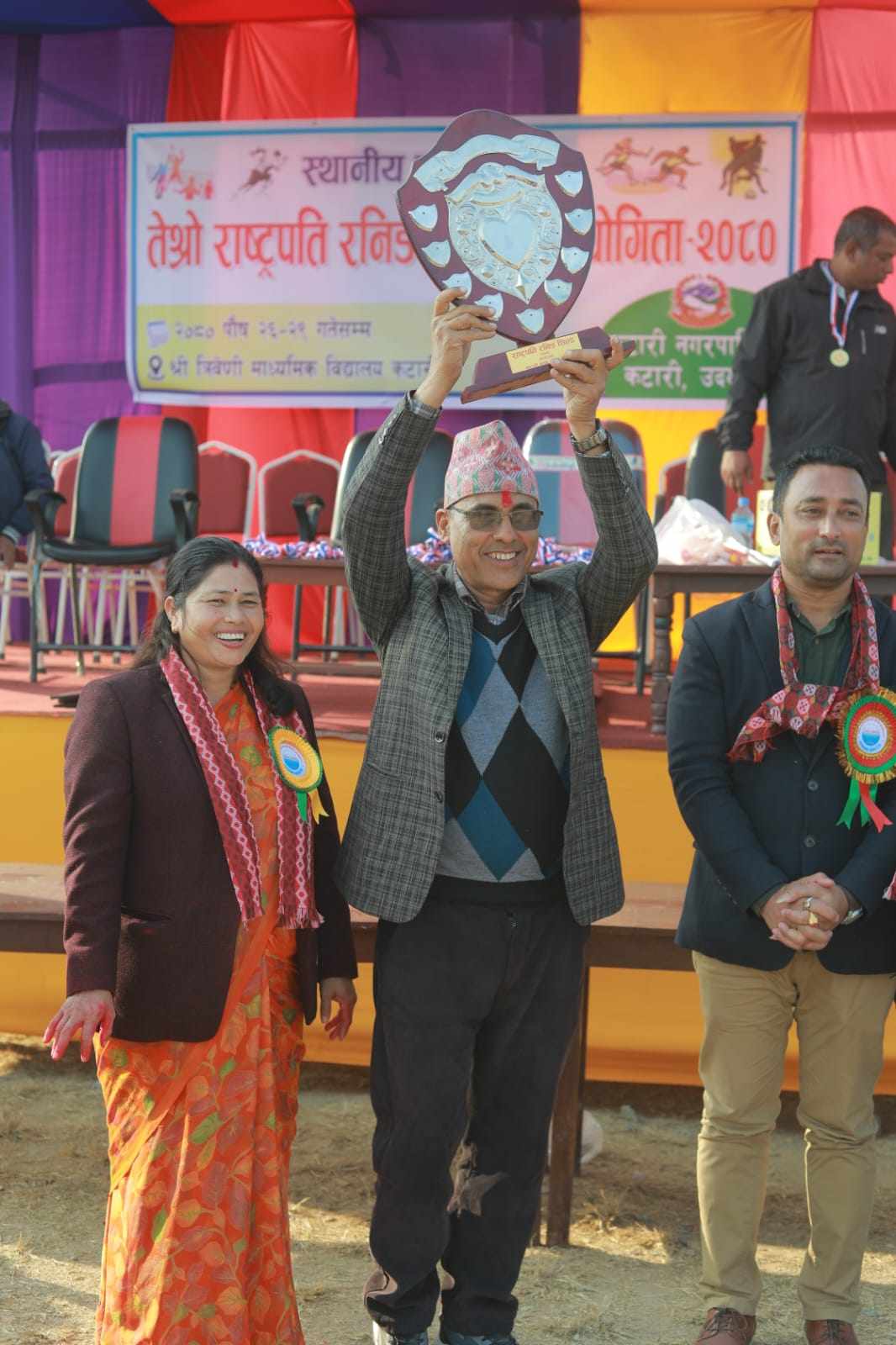 यस अघि पहिलो र दोस्रोमा समेत प्रथम स्थान हासिल गरेको त्रिवेणीले लगातार तेस्रो पटक पहिलो स्थान हासिल गर्दै शिल्ड कब्जा गरेको हो । कटारी नगरपालिकाको आयोजनामा आईतबार सम्पन्न तेस्रो राष्ट्रपति रनिङ्ग शिल्डमा त्रिवेणी मावि ३३ स्वर्ण , ८ कास्य , र १३ रजत पदक सहित प्रथम भएको हो ।