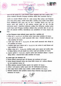 एमालेले मलेप प्रतिवेदनमा उल्लेख भएको सैद्धान्तिक बेरुजुको बारेमा गाउँपालिकाको आधिकारिक धारणा सार्वजनिक गर्न माग गरेको छ ।