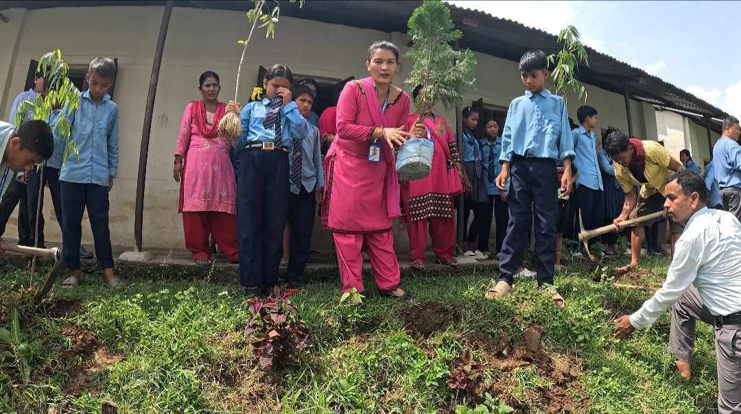 विद्यालय परिसरमा विभिन्न जातका दुईसय विरुवाहरु रोपिएको समाजका अध्यक्ष केबी घलेले जानकारी दिनुभयो । आज भएको कार्यक्रममा वृक्षारोपणका लागि डिभिजन वन कार्यालय कटारी (त्रिवेणी)ले विरुवाहरु सहयोग गरेको थियो ।