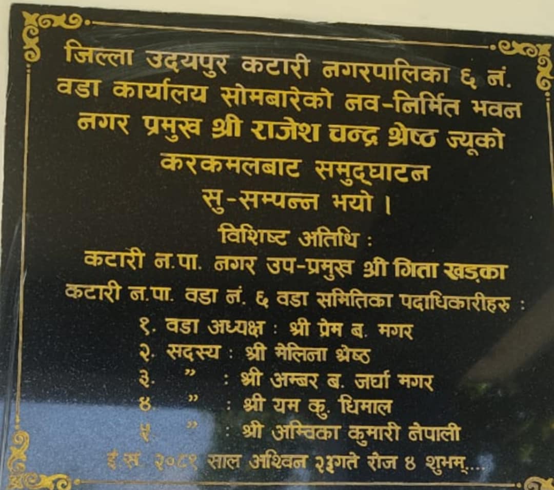 कटारी/ कटारी नगरपालिका वडा नम्बर ६ ले अव आप्mनै वडा कार्यालय भवन पाएको छ । नगरपालिकाको ५० लाखको लागतमा नवनिर्मित ३ कोठे वडा कार्यालय भवनको आज उदघाटन गरिएको वडाध्यक्ष प्रेम मगरले बताउनुभयो ।