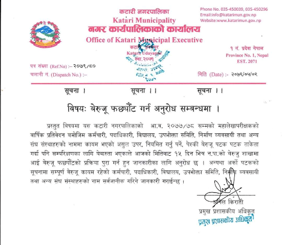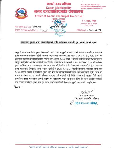 कटारी नगरद्वारा भदौ मसान्त भित्रै सामाजिक सुरक्षा भत्ता नविकरण गर्न आग्रह