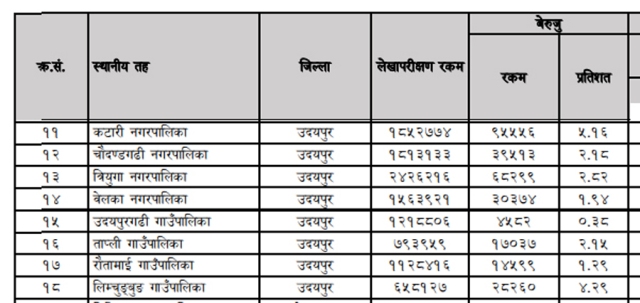 महालेखाको प्रतिवेदन , कटारीमा उदयपुर जिल्लाकै सवैभन्दा बढी बेरुजु