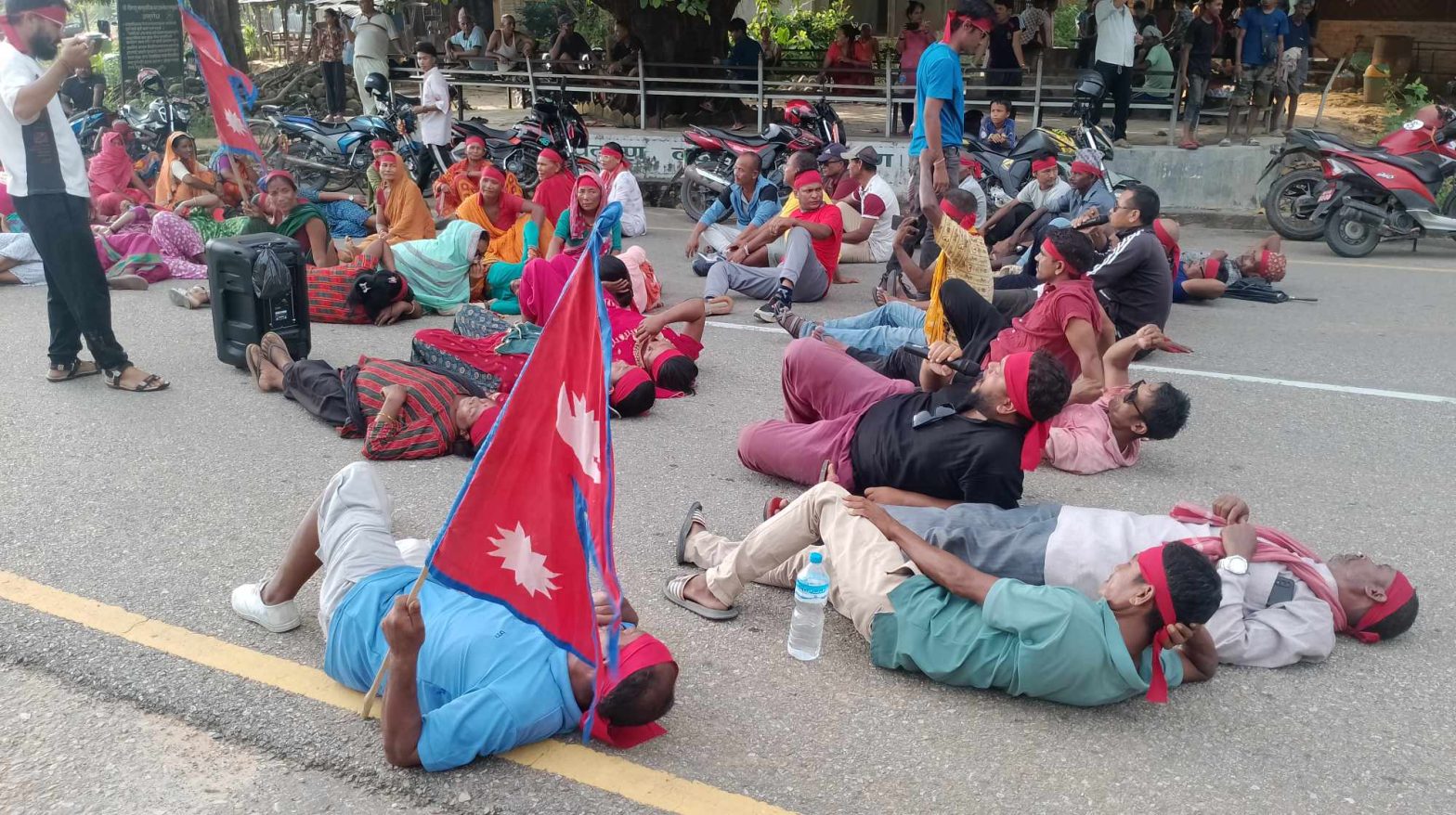 दुर्गा प्रसाईको पक्राउ पुर्जी फिर्ता गर्नुपर्ने भन्दै दुधौलीमा प्रदशर्न