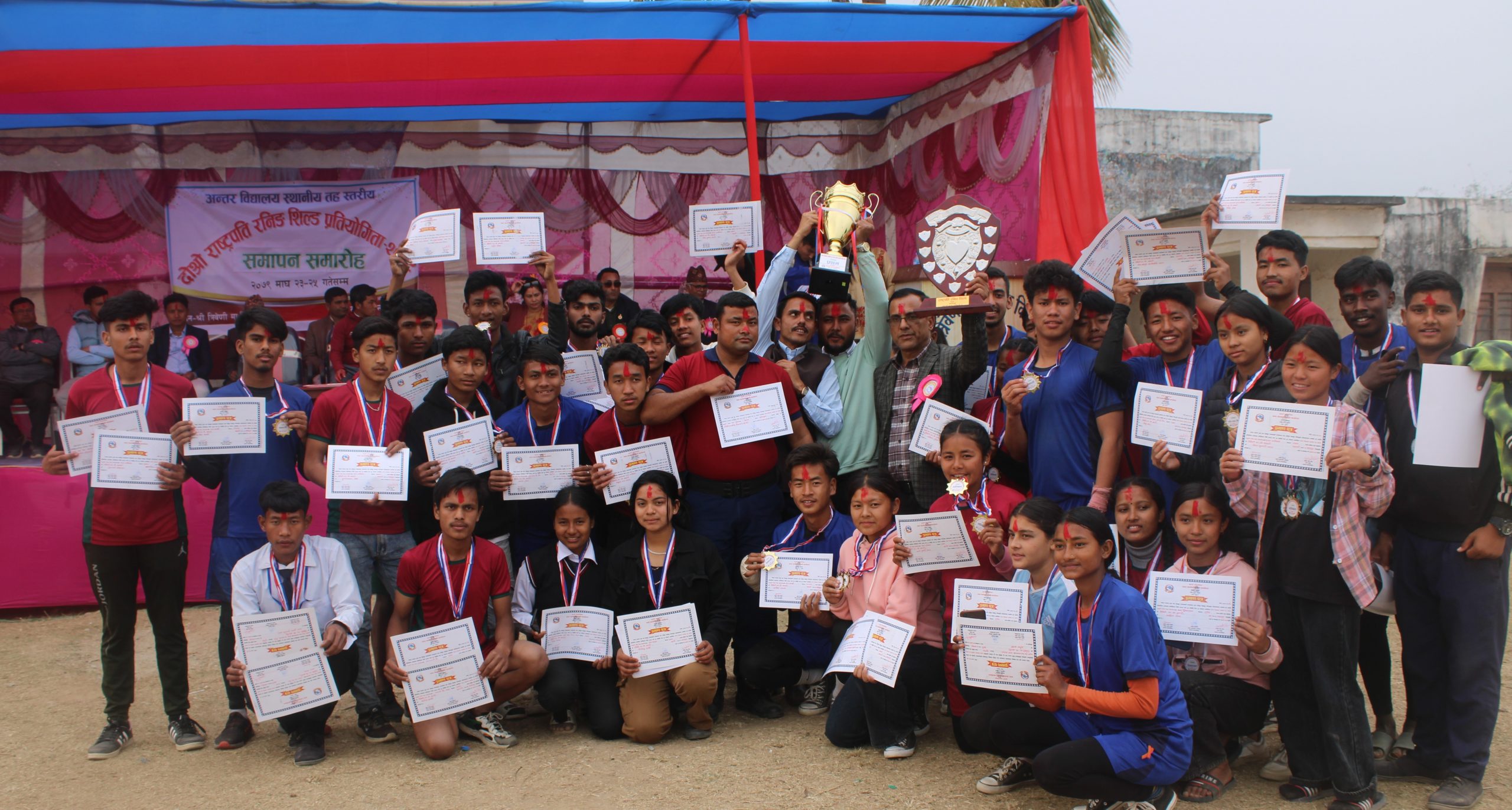 कटारी नगरस्तरीय राष्ट्रपति रनिङ् शिल्डमा ३० पदक सहित त्रिवेणी मावि प्रथम