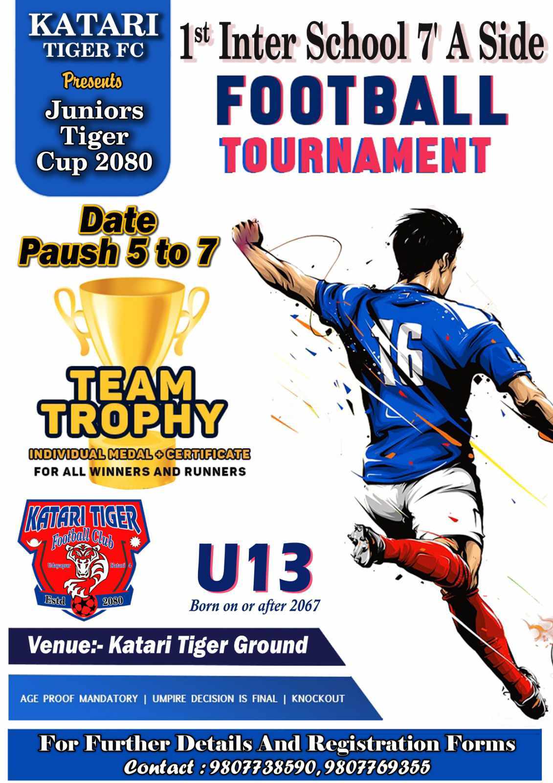 प्रथम अन्तरविद्यालय स्तरीय टाईगर कप फुटबल शुक्रबार र शनिबार हुने