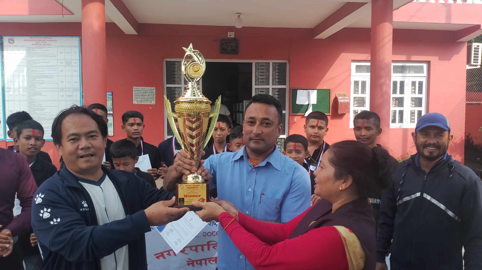 सेभेन ए साईड फुटबल च्याम्पिएनसिप विजेता टिमलाई नगरपालिकाको बधाई